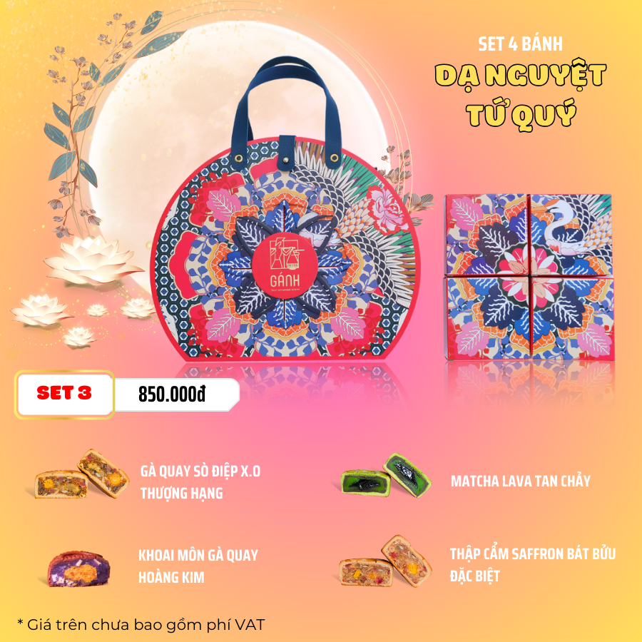 Gồm có 4 bánh: 2 loại bánh nhân mặn và 2 loại bánh nhân ngọt